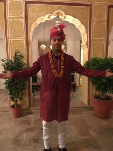 La Samode Palace ne-au imbracat in Maharajah si Maharani (adica printi si printese), in costume traditionale si ne-au tratat regeste. O primire cu flori de iasomie si uleiuri parfumate, un cocktail in salonul mozaicurilor si al oglinzilor si apoi o petrecere traditionala in gradina palatului care s-a intins pana dupa ora 3 dimineata. Focuri de artificii la sosirea in palat, intampinare pe camile IMG_0290din partea staff-ului, tobe si dansuri tranditionale, o experienta cu adevarat incredibila.